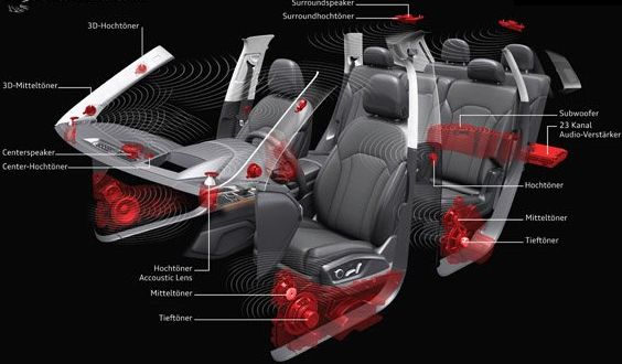 Der 3D‑Klang feiert 2015 im neuen Audi Q7 Premiere. Er ist sowohl als Bestandteil des Advanced Sound System von Bang & Olufsen als auch des Bose Surround Sound erhältlich. Das Herzstück ist ein komplexer Rechenalgorithmus, der die Steuersignale für jeden Lautsprecher schnell und präzise berechnet. Audi hat diesen gemeinsam mit dem Fraunhofer Institut für Integrierte Schaltungen in Erlangen für das Bang & Olufsen‑System entwickelt.