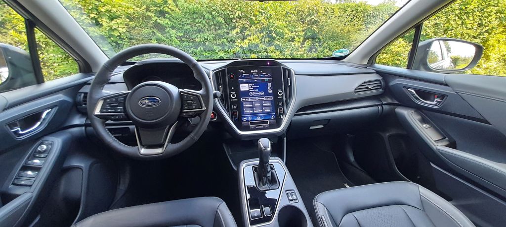 Auch innendrin gibt der Crosstrek den Pragmatiker, Nutzende erfreuen sich an ordentlicher Verarbeitung, angenehmen Materialien und an Subarus Zugeständnis an die Neuzeit in Gestalt des großen, vertikalen Monitors in der Mittelkonsole. Dessen Grafik ist nicht der heißeste Feger in der Automobilbranche, das Ganze wirkt ein bisschen sehr zurückhaltend. Aber dafür erklärt sich die Bedienung weitestgehend selbst, auch Menschen mit analoger Bildung kommen gut damit zurecht.