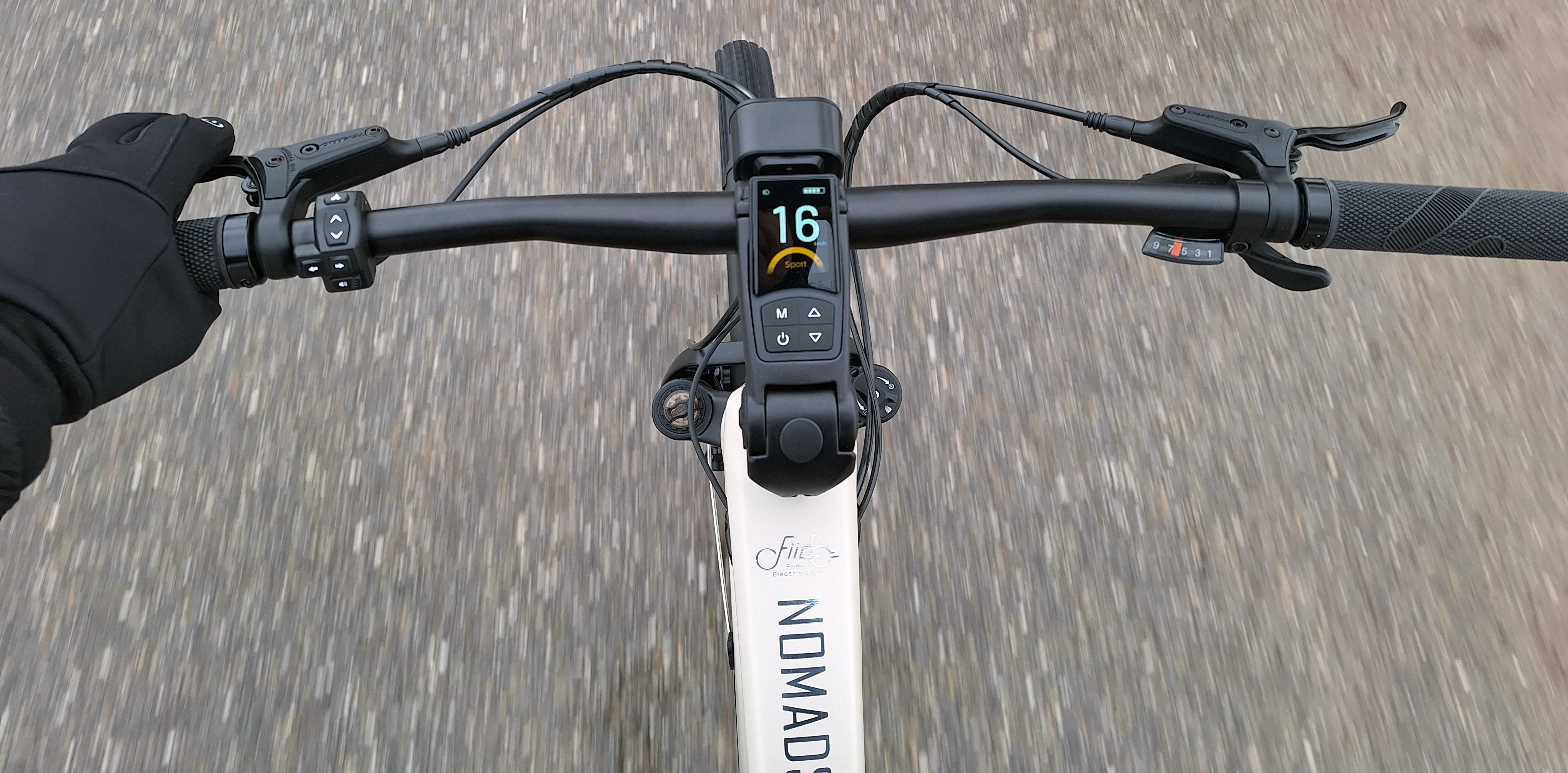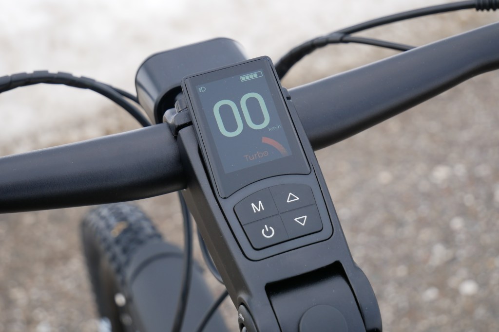 Bei der Bedienung geht Fiido wieder mal einen eigenen Weg. Die jeweils mit eigenen Farben unterlegten Unterstützungsstufen (Eco, Sport, Turbo) werden zwar wie üblich über die Lenker-Remote per Tasten mit Auf- und Abwärtspfeil angesteuert. Wer aber bei Turbo versehentlich nochmal nach oben drückt, landet auf Stufe 0 – und muss sich erst wieder mit mehrfachem Tippen nach oben arbeiten. Besser wäre die übliche Funktion: Pfeil rauf – Unterstützung rauf. Pfeil runter: Unterstützung runter. Zudem sind die (immerhin beleuchteten!) Tasten mindestens eine Nummer zu klein ausgefallen. Das merkt man speziell im Winter mit Handschuhen sehr deutlich. Und die in der EU nicht zugelassene Hupe hätte sich der Hersteller getrost schenken können.